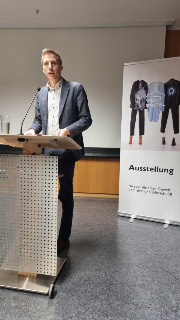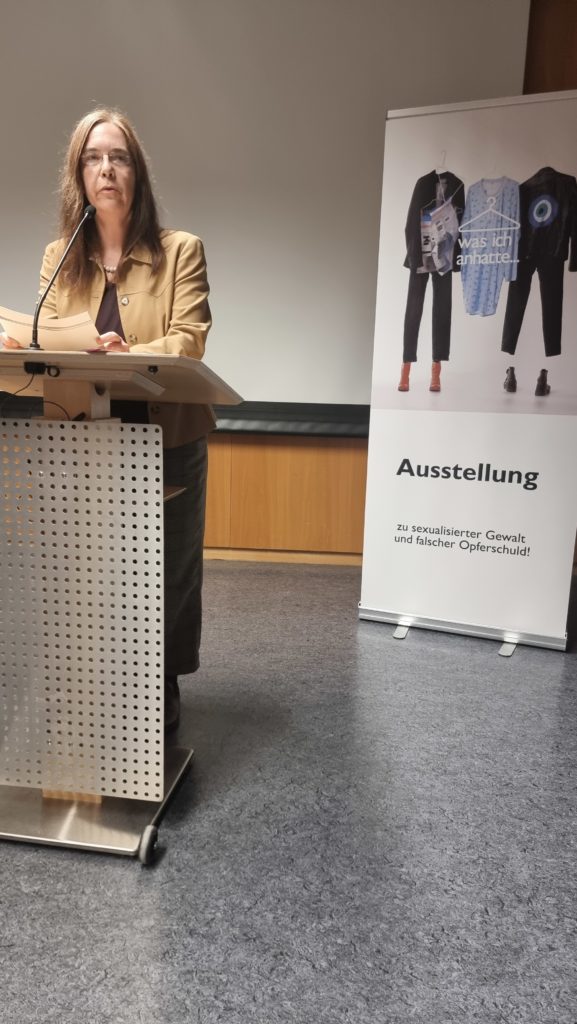 Die Ausstellung wurde am 19. November mit einer feierlichen Vernissage, welche zahlreiche Gäste anzog, eröffnet. In den Grußworten von Münchens 2. Bürgermeister Dominik Krause, der Kreisverwaltungsreferentin Dr. Hanna Sammüller-Gradl, der städtischen Gleichstellungsbeauftragten Nicole Lassal sowie der Kuratorin Beatrix Wilmes wurde die gesellschaftliche Relevanz der Ausstellung hervorgehoben. Diese Reden bildeten den perfekten Rahmen, um auf die dringende Notwendigkeit Vorurteile abzubauen aufmerksam zu machen und ein starkes Zeichen gegen Victim-Blaming zu setzen.