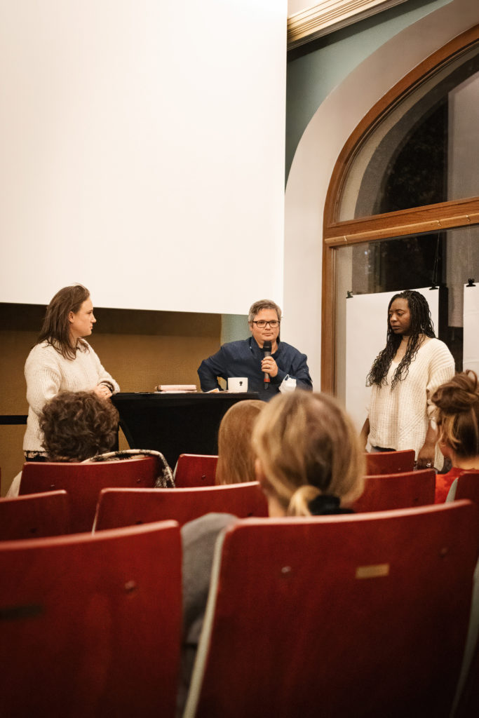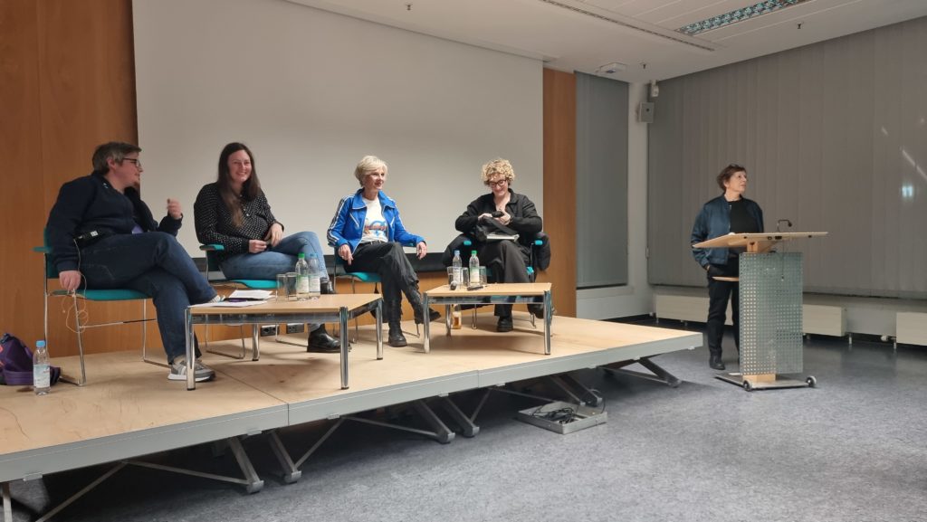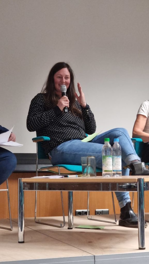 Im Anschluss an die Filmvorführung fand ein intensives Podiumsgespräch statt, das von der erfahrenen Moderatorin Lena Schneck geleitet wurde. Zu den Gästen gehörten Diana-Sandrine Kunis, Gründerin des Social Justice Instituts München, sowie Jakob Pfeiffer von beyond-binary.net. Gemeinsam diskutierten sie zentrale Fragen wie: „Warum begünstigt das Patriarchat (sexualisierte) Gewalt?“ und „Wie kann eine gewaltfreie feministische Zukunft aussehen?“